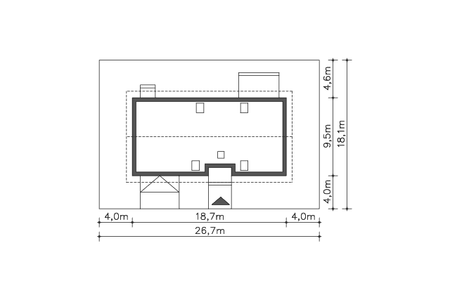 - min. szerokość działki: 26,70 m
