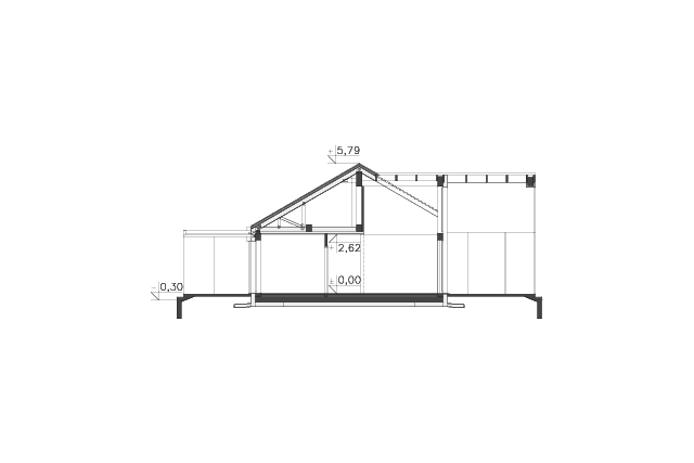 W części nocnej – prywatnej, znajduje się wyraźnie wydzielona sypialnia z własną garderobą i łazienką oraz dwa ustawne pokoje, duża wspólna łazienka i przydatna pralnia. W domu przewidziano także spiżarnię i pomieszczenie gospodarcze z kotłem gazowym. Taki układ pomieszczeń zapewnia mieszkańcom wygodę, a standard energooszczędny gwarantuje, że mimo sporego metrażu, dom nie będzie drogi w ogrzewaniu.